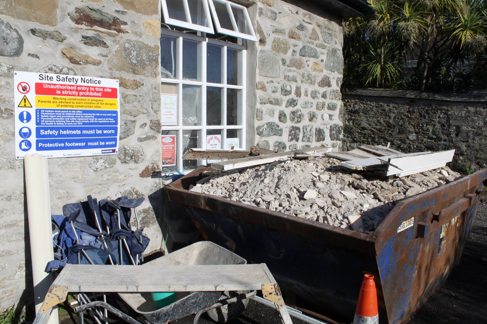 The day finally arrived, after 2 years of fund raising and planning, work was able to start on the refurbishment of the Church Room. As the following shots show the builder arrived, the electrician arrived and the portable loo - all essential items !!