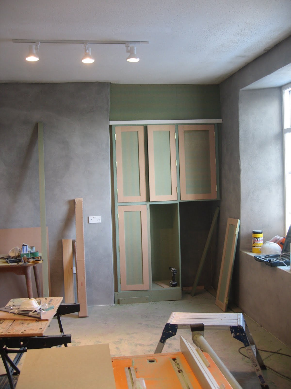 Work is progressing very well and is on schedule. The walls are drying out well, new electric sockets have been installed and the stainless steel kitchen units are currently being modified to suite the redesigned layout.